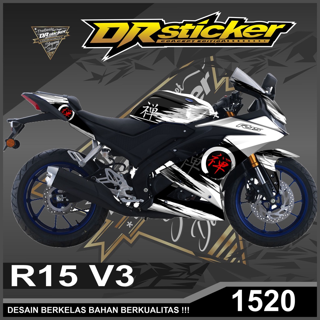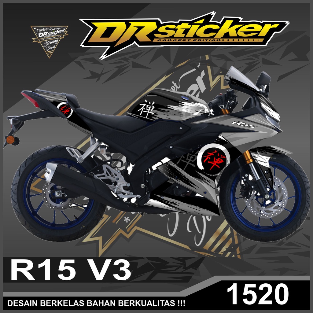 Decal COSTUM R15 V3 FULLBODY Sticker Lamination GLOSSY DOFF LIS Variation Abstract Vector COMBINATION FONT Japanese KANJI