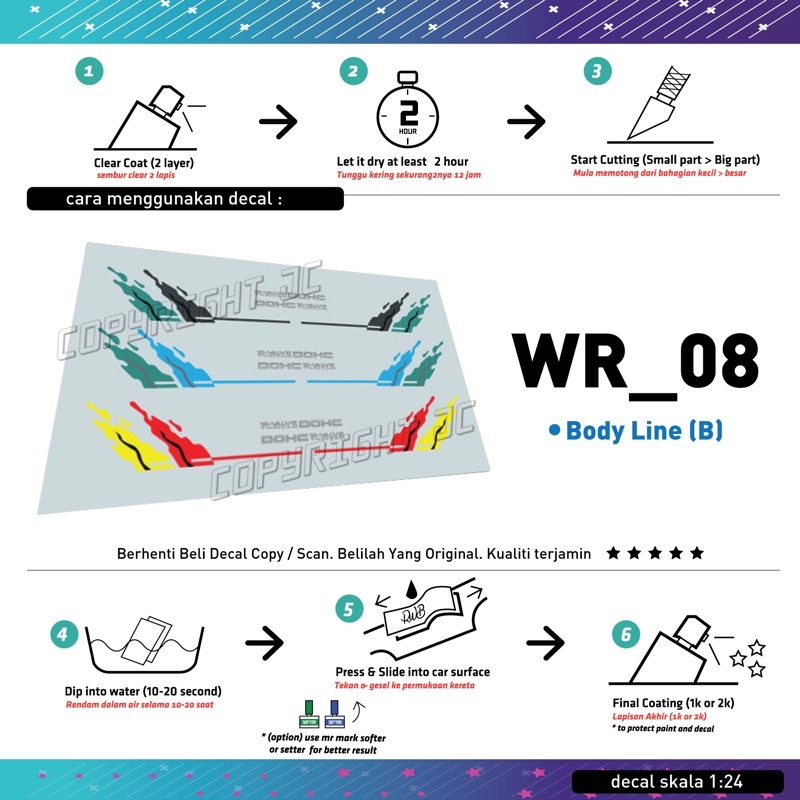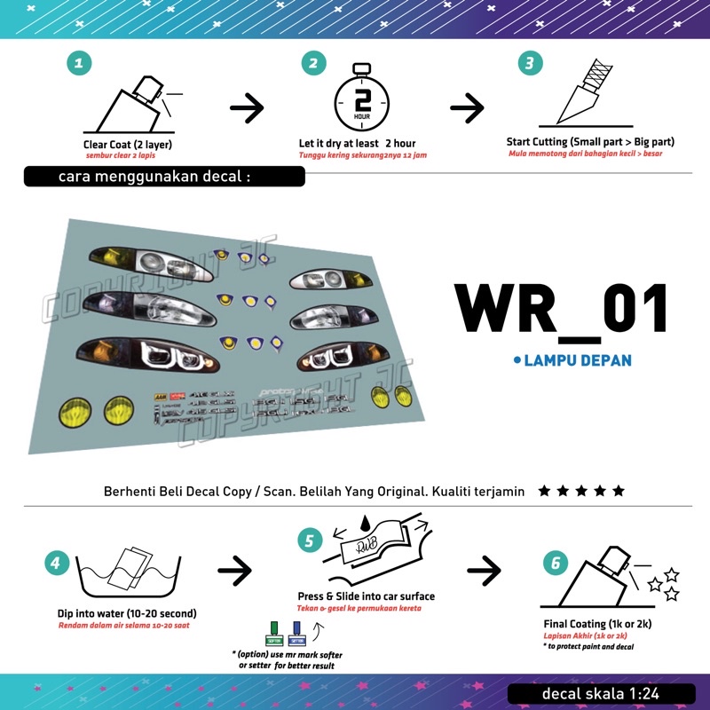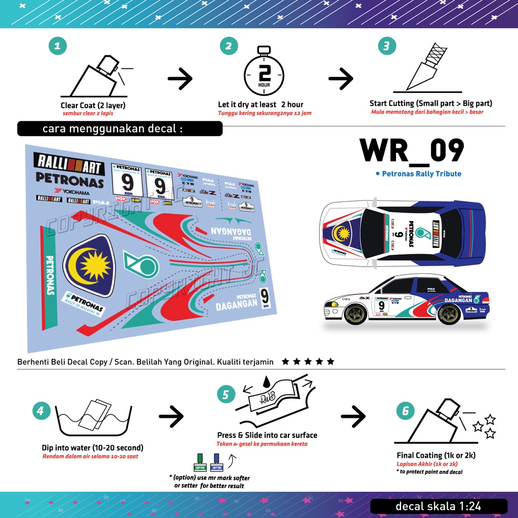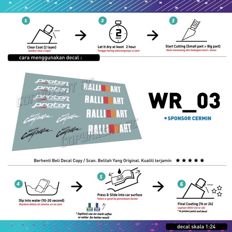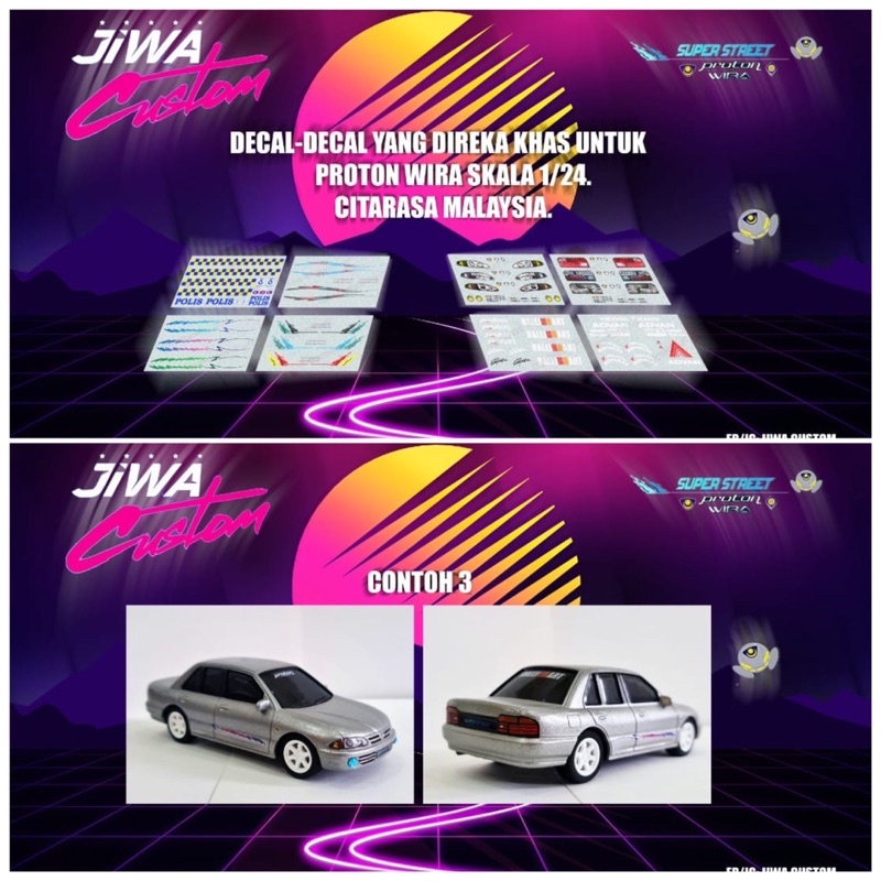 Decal untuk Proton Wira scale 1:24 (Tabby Model) Model kit Mokit TE37 albino 1.3ex emblem wira mainan MYVI MODEL