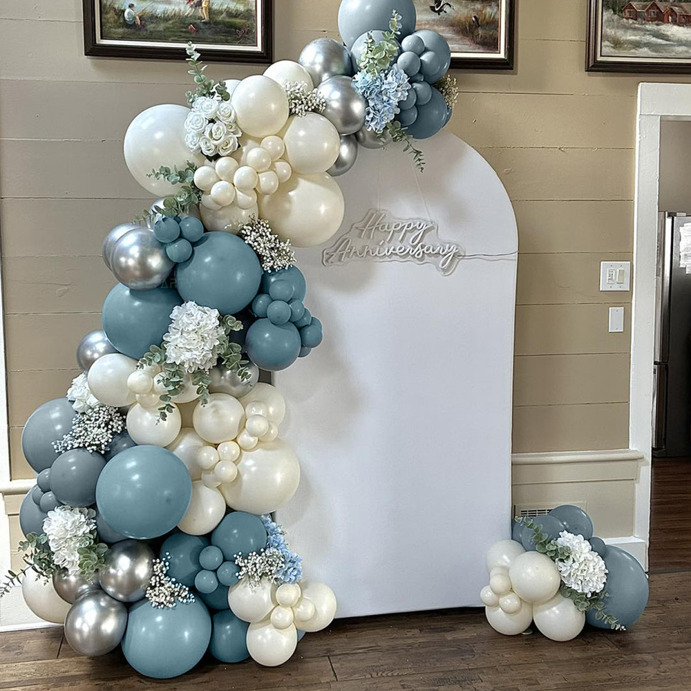 GeeParty 127pcs Dusty Blue Metallic Balloon Garland for Birthday Party Anniversary Graduation Decors