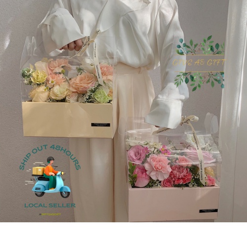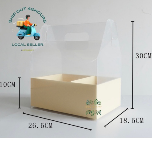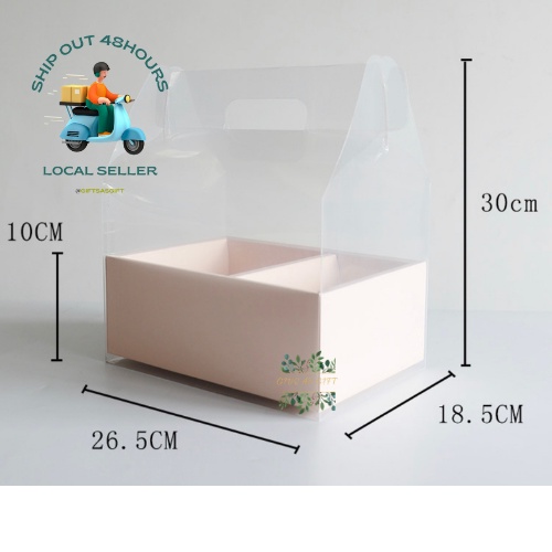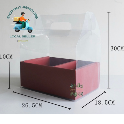 Decorative Transparent Carrying Flower Gift Box With 2 Compartment
