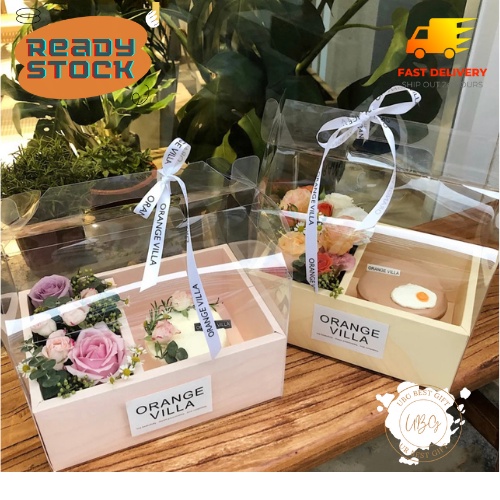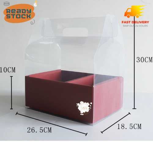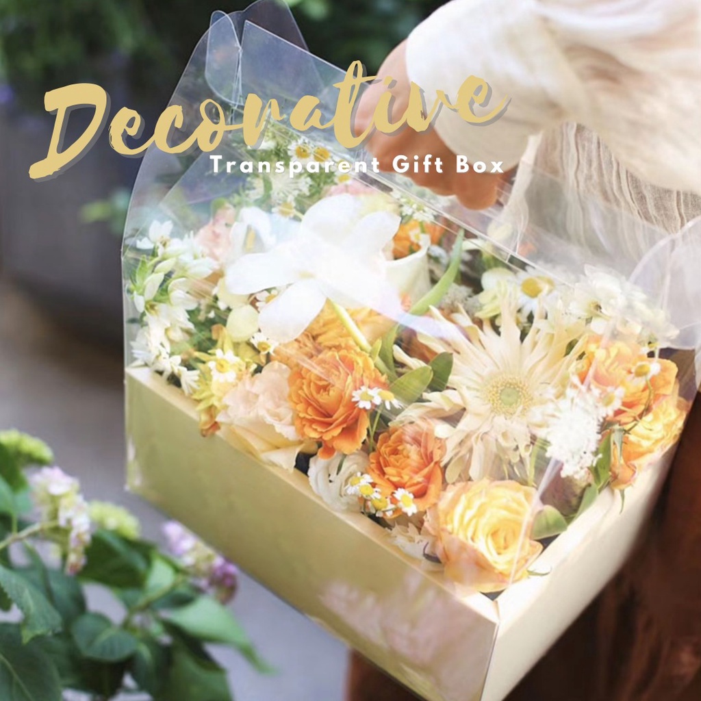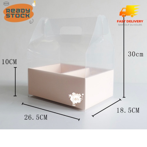 Decorative Transparent Carrying Flower Gift Box With 2 Compartment