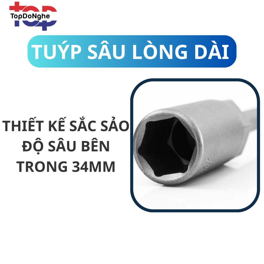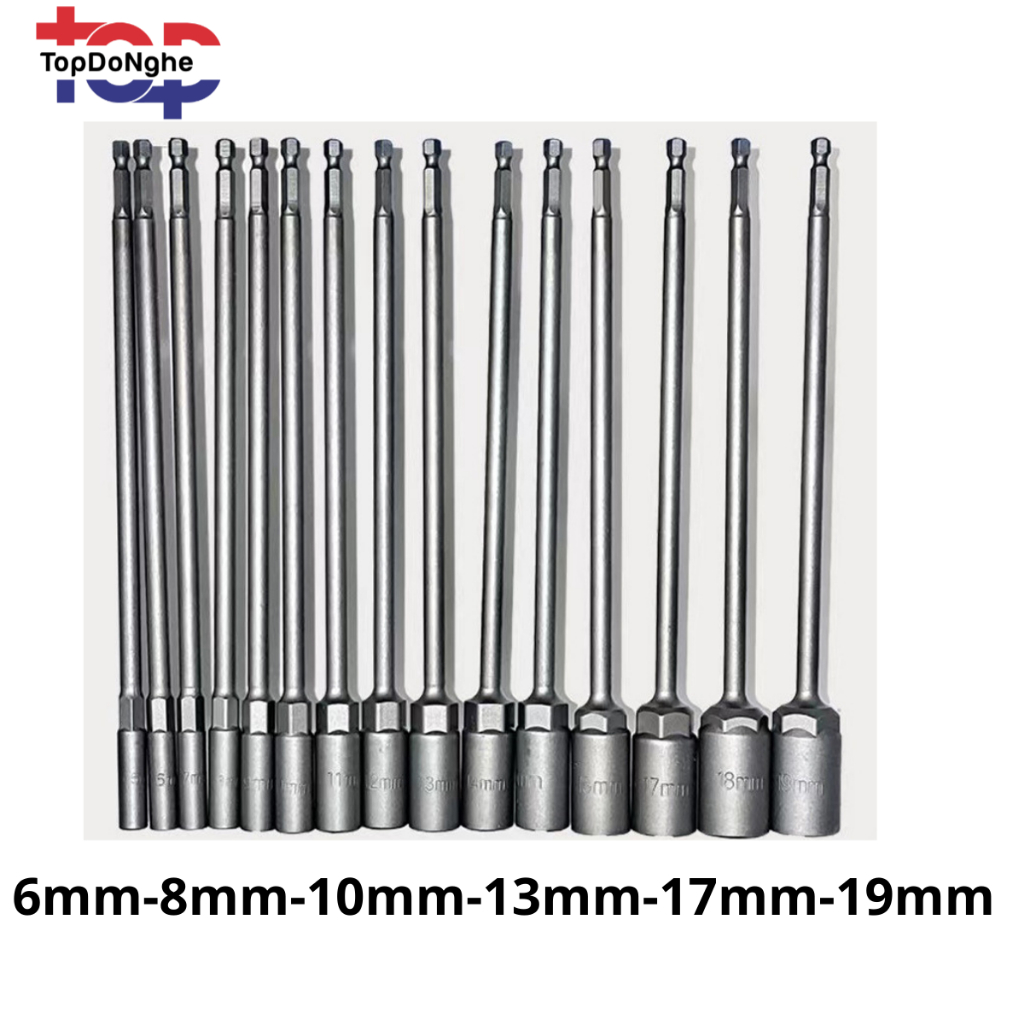 Deep bolt socket head for tightening and opening screws, 250mm long, many different sizes, hexagonal socket