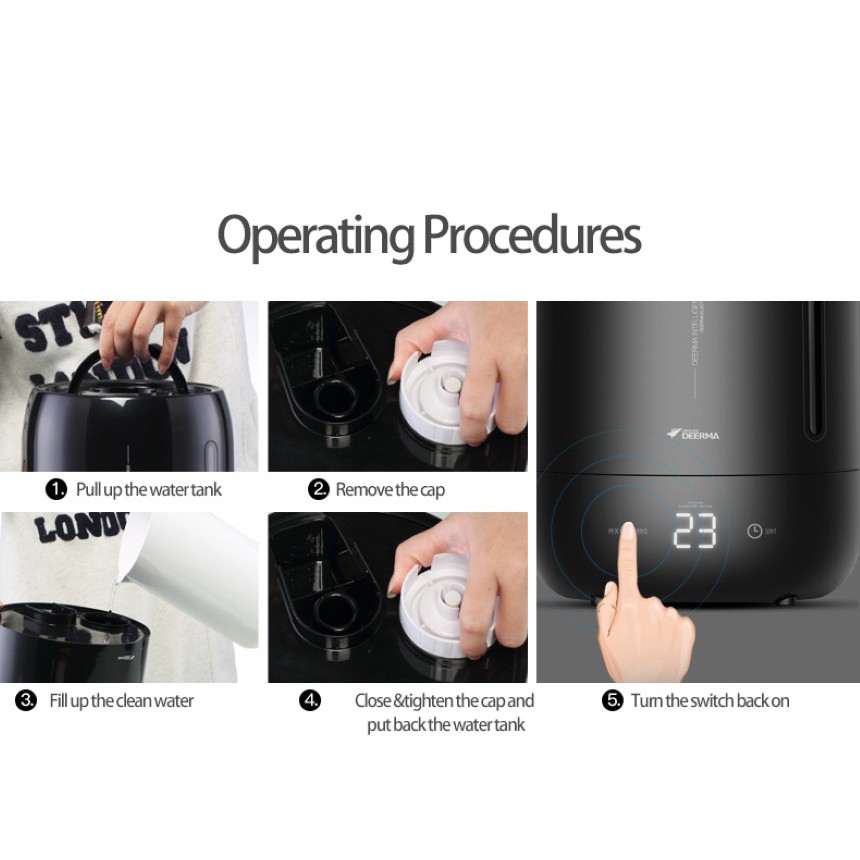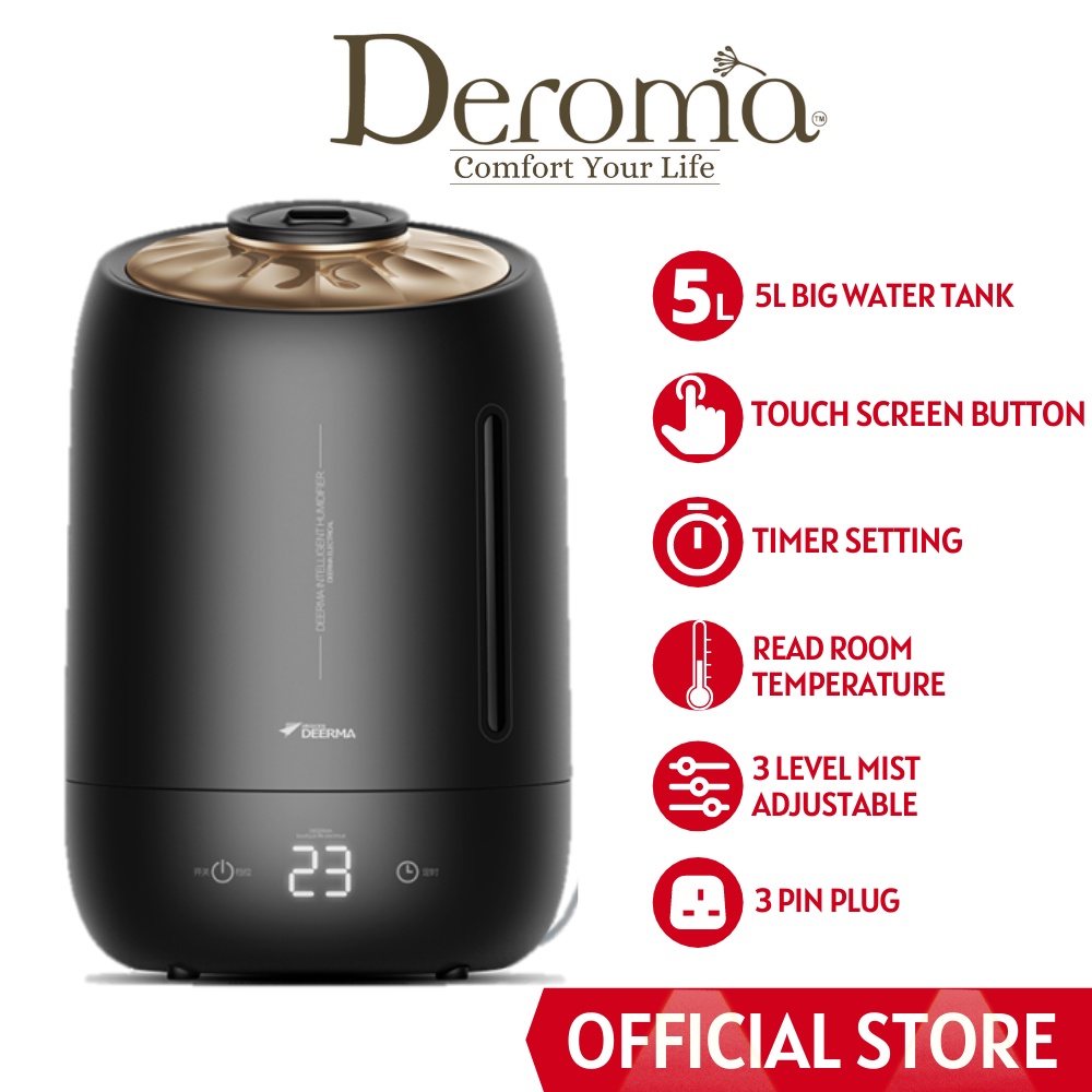 Deerma M800 Digital LED Display Air Humidifier (5L) + Deroma Essential - Black Pearl