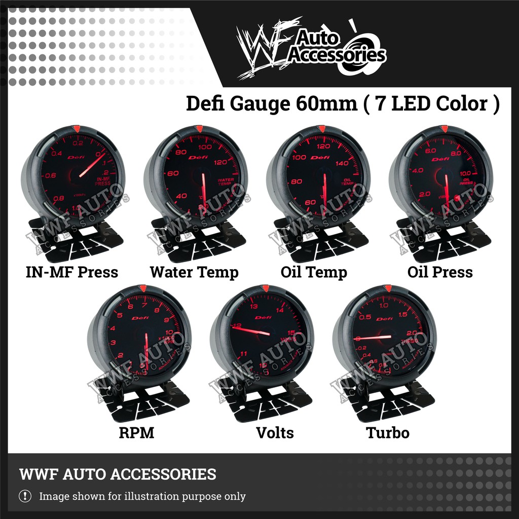 Defi Advance BF 60mm Gauge Meter Turbo Boost Oil Water Temp Oil Press Vacuum Tacho RPM Volt Universal Car