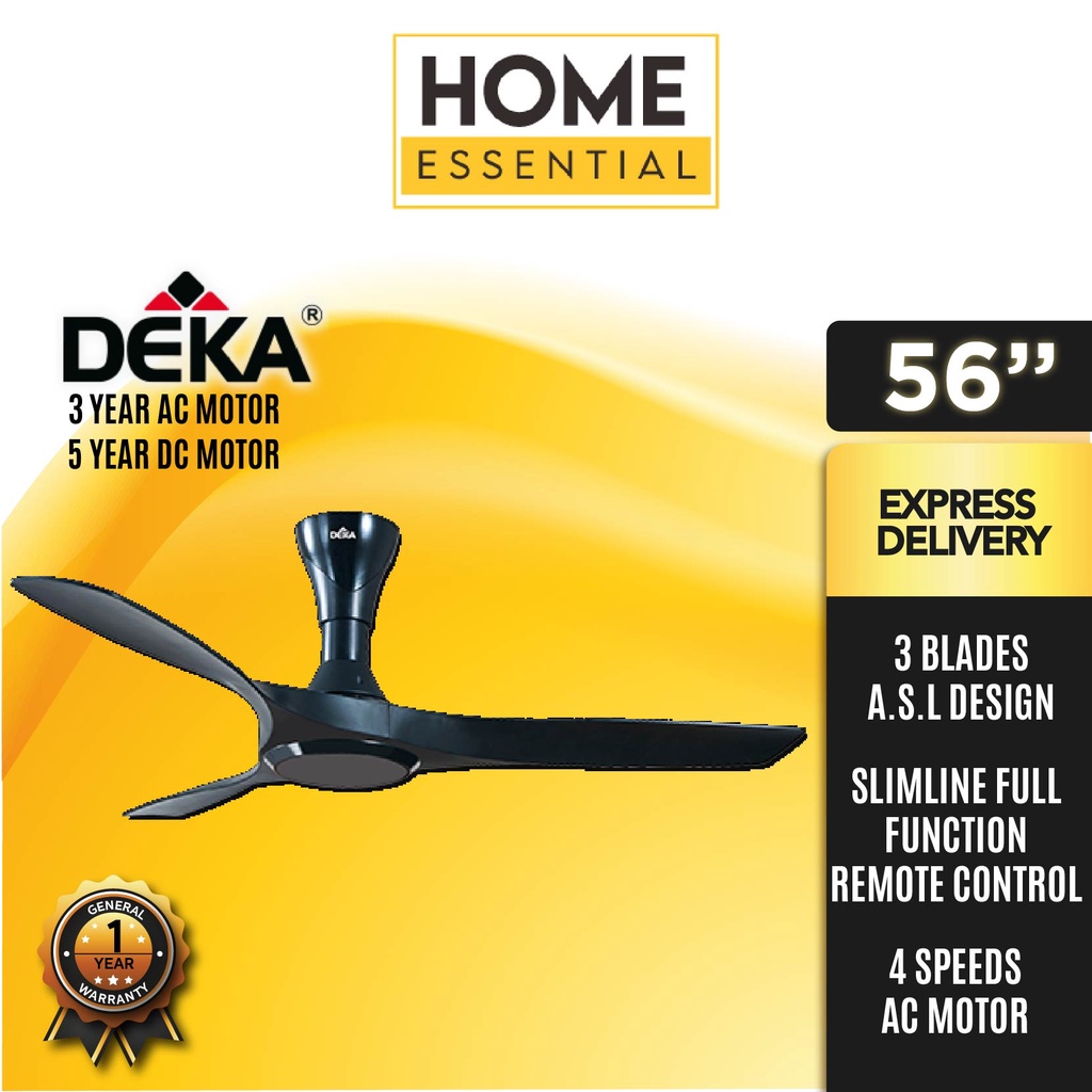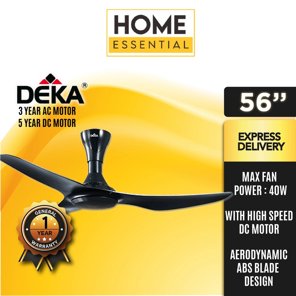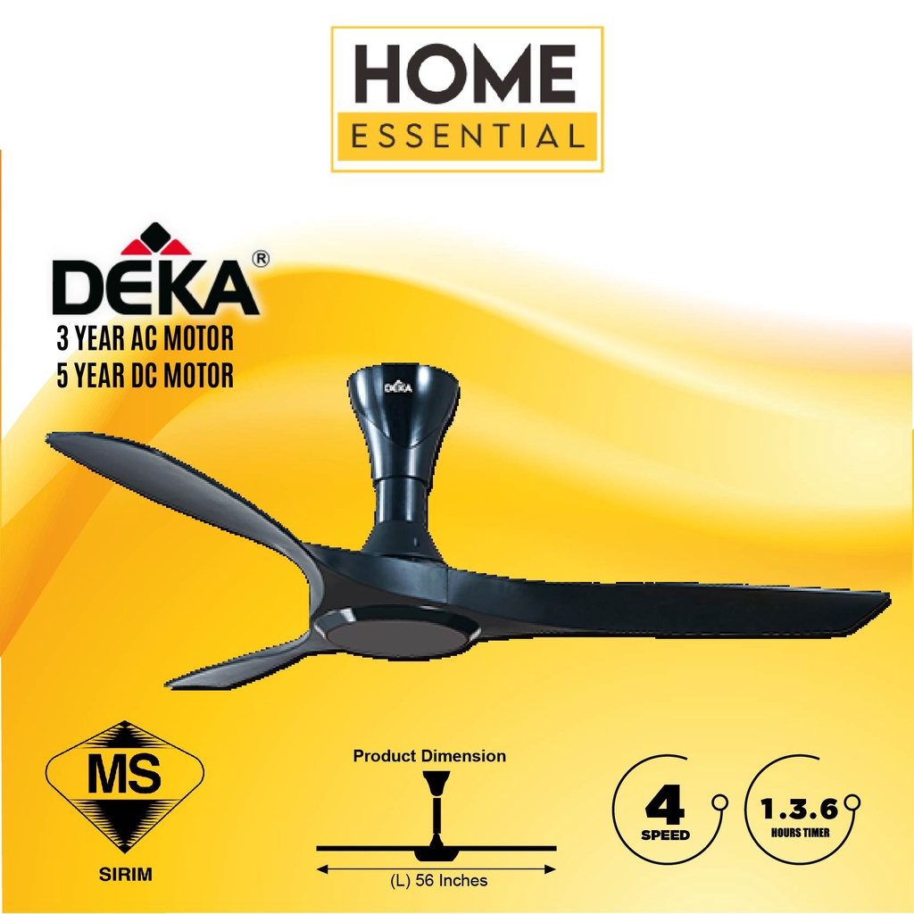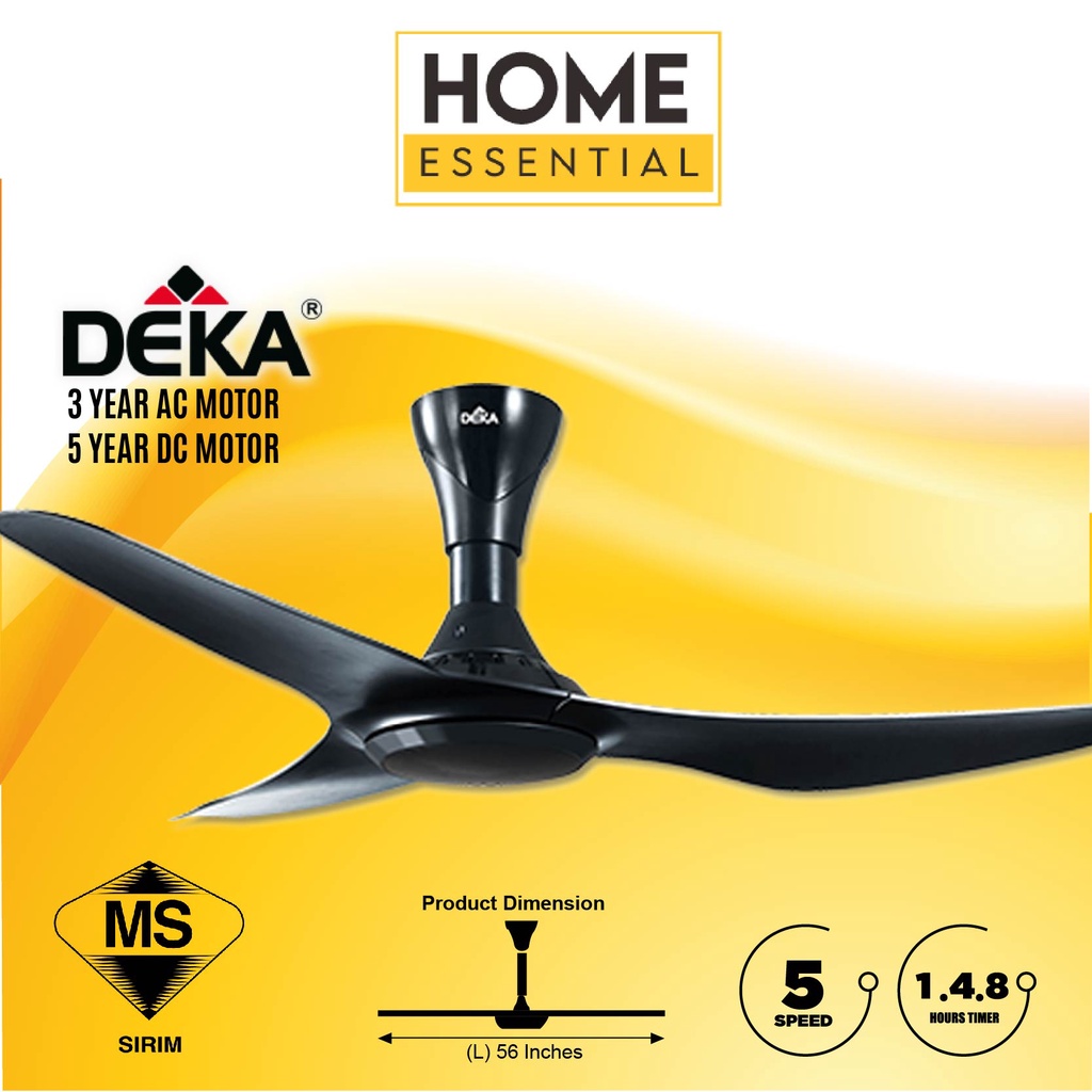 Deka 3 Blades DC Motor Ceiling Fan with Romote Control DC8 BK AC Motor SX-63 BK (56")