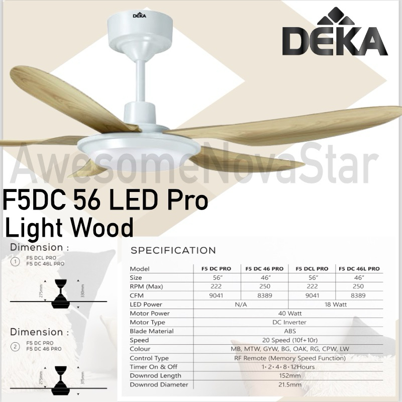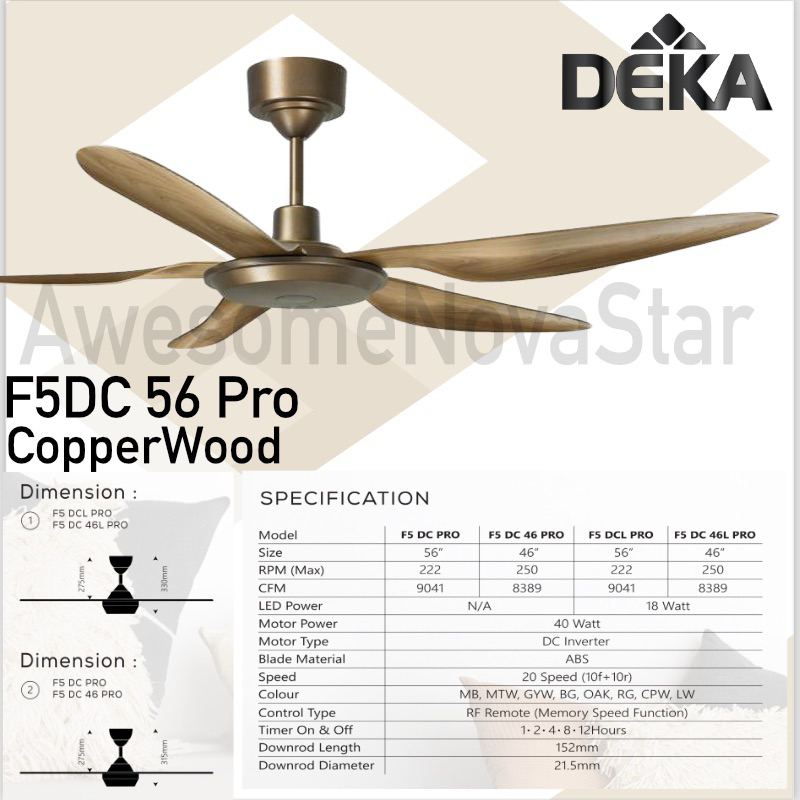Deka Kronos F5DC Pro 56” / 46” K6 56" 42" / K5 Steel Blade Remote Control DC Motor Ceiling Fan / Kipas Siling