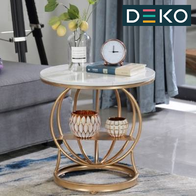 Dekomall Table Side Modern Marble Top Nordic Side Table Kopi Table Iron Living Room Table