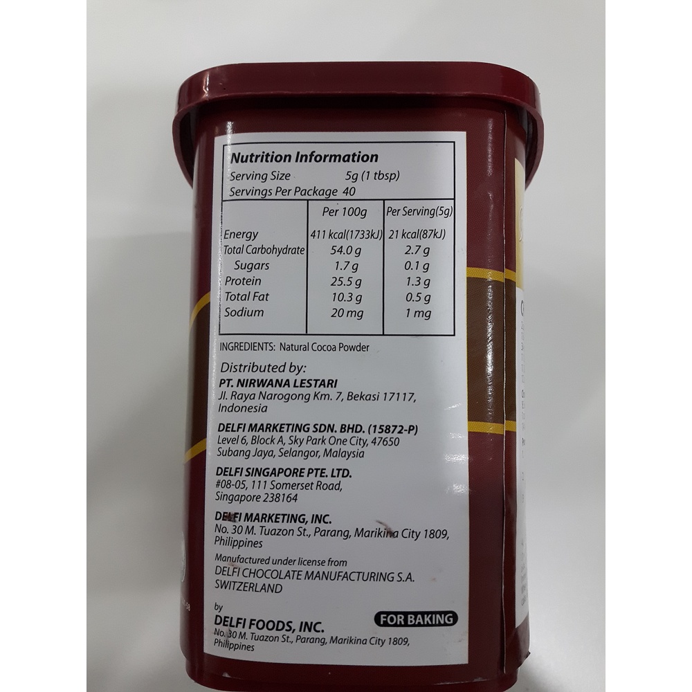Delfi 100% Cocoa Powder 180g (Unsweetened) (Halal) [New Label]