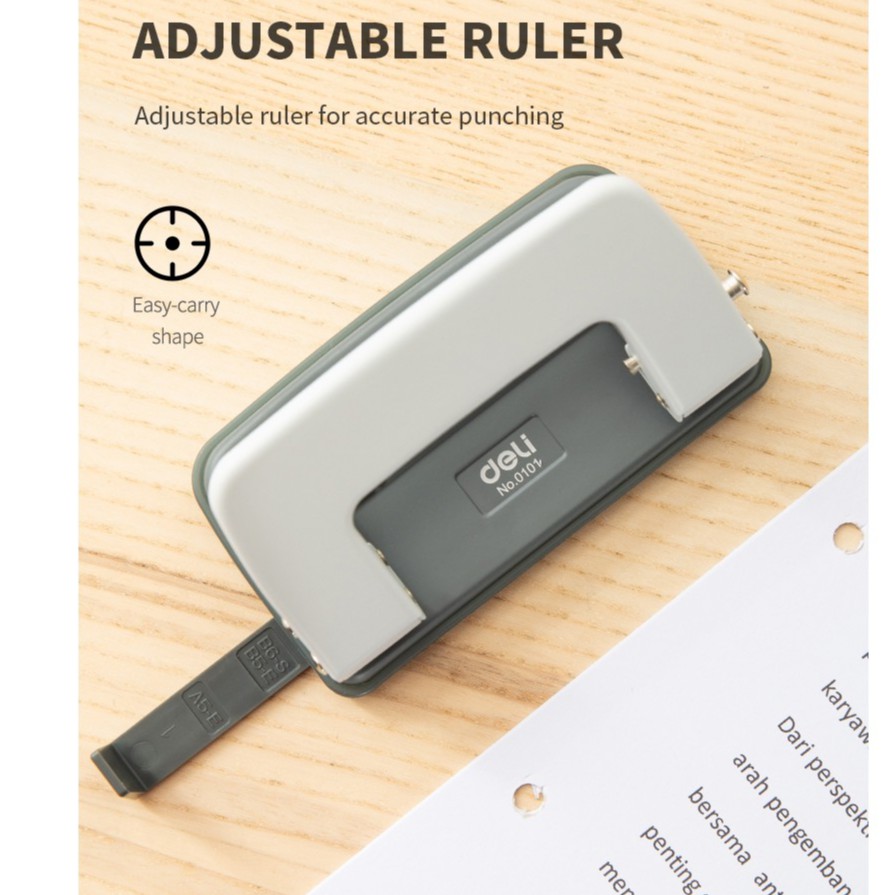 Deli 2-Hole Paper Punch | Lock System Adjustable Ruler - Small (10's) E0101