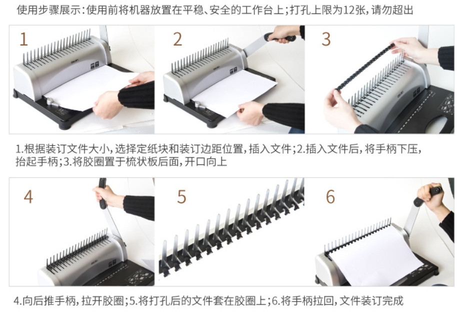Deli 3870 Manual Heavy Comb Binding Machine 21 Holes A4 Paper Binding 12 Sheets Punch Hole Mesin Binding Kertas