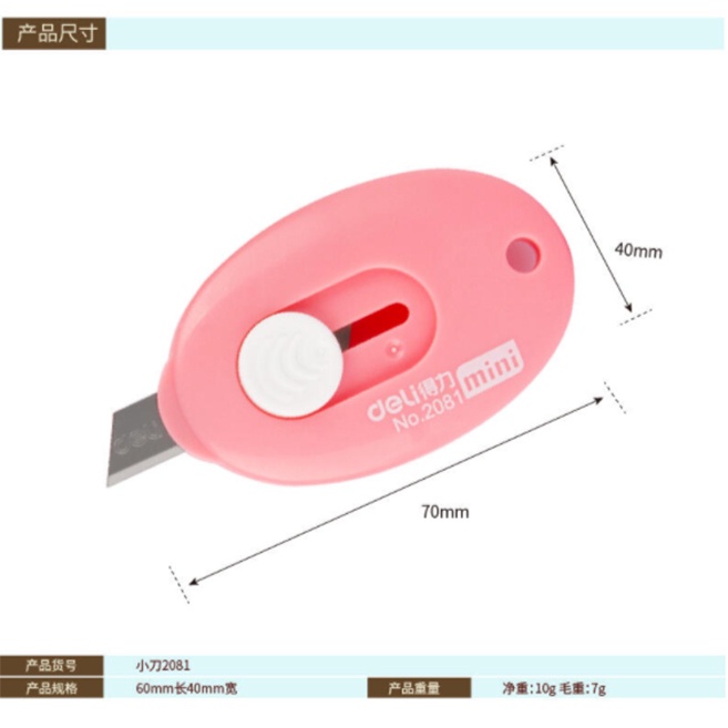 Deli Cutter 2081 Color Portable Safety Good Erasing Performance Mini Cutter (70 x 40mm/Pcs)