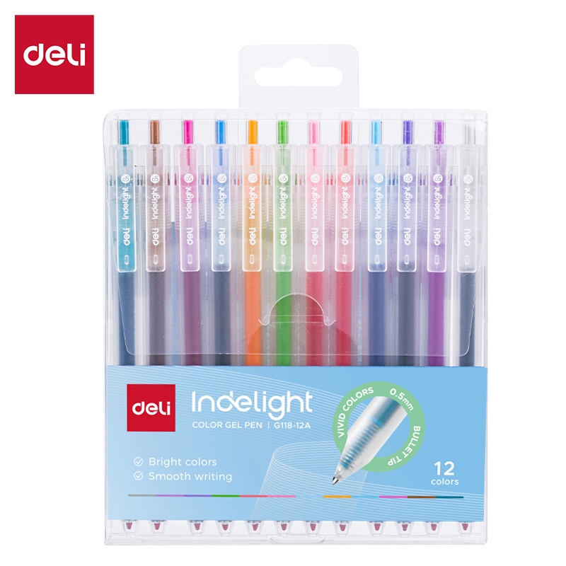 Deli Delight Gel Pen Multiple Colour Pens 0.5mm Smooth Writing Bright Colours (12 Pcs/Box)