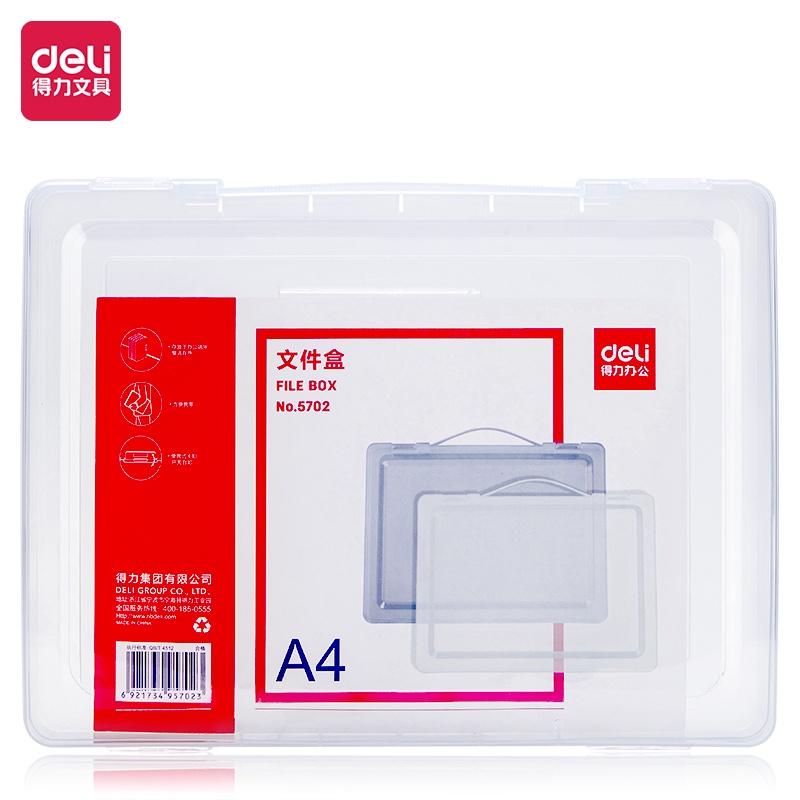 Deli File Box 5702 Transparent File Storage Size A4 Portable PP Box (356 x 266 x 35mm/Pcs)