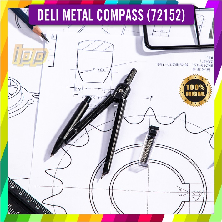 Deli Metal Drawing Mechanical Pencil Compass / Black Metal Drawing Compass (72152)