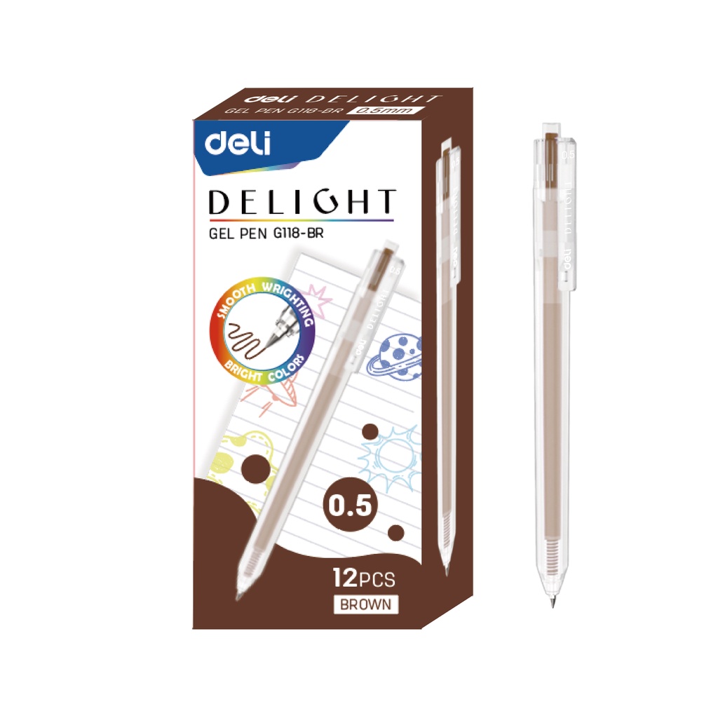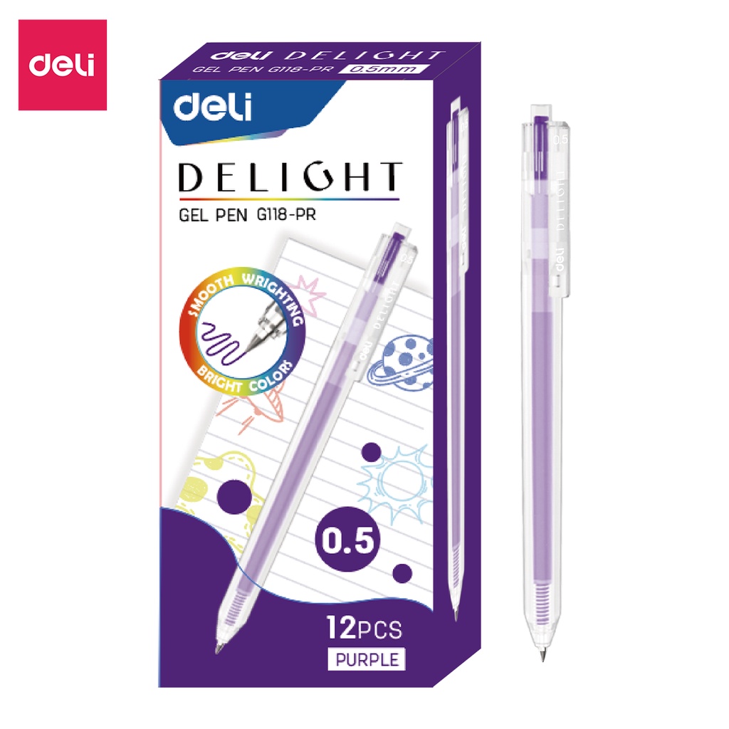 Deli Delight Gel Pen 0.5mm Multi color Ballpoint Pen Smooth Writing Comfort Grip Bright Colours Office School Supplies