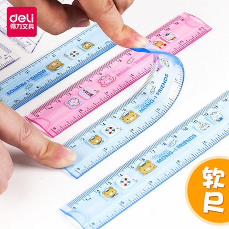 Deli Pembaris Lurus 15/20/30Cm Kreatif Fleksibel Lembut Pembaris Lurus Pembaris Kanak-Kanak Sekolah Rendah Dengan Pita Plastik