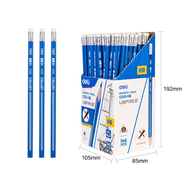 Deli Pencil HB Writing Graphite Pencil (192 x 85 x 105mm x 144 Pcs/Box) EC010-HB