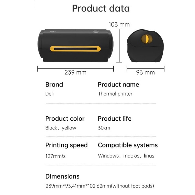 Deli Printer E780C Thermal Black Portable Printer High Speed Printing Multiplatform Universal Label Printer