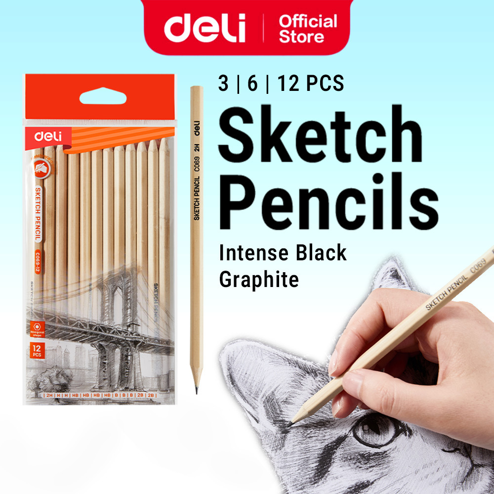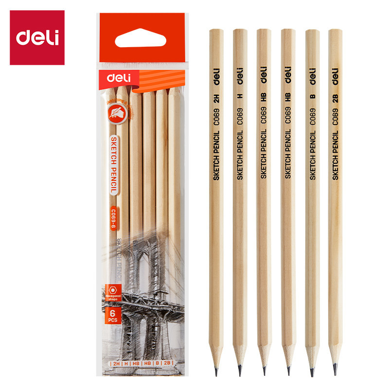 Deli Sketch Pencil 2H H HB B 2B Smooth Writing Drawing Pensel Graphite Pensil School Pencel Lukisan