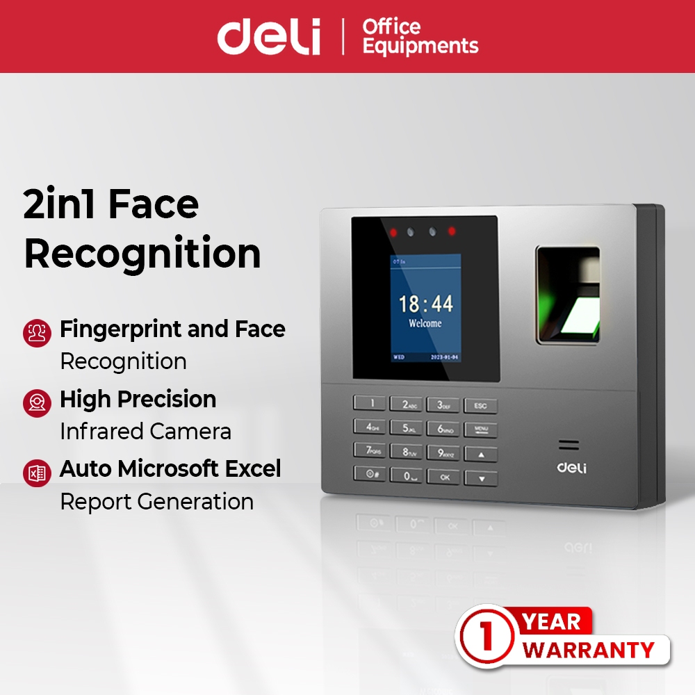 Deli Smart 2in1 Facial Recognition Thumbprint Attendance Machine Absence Punch Card Mesin Kehadiran