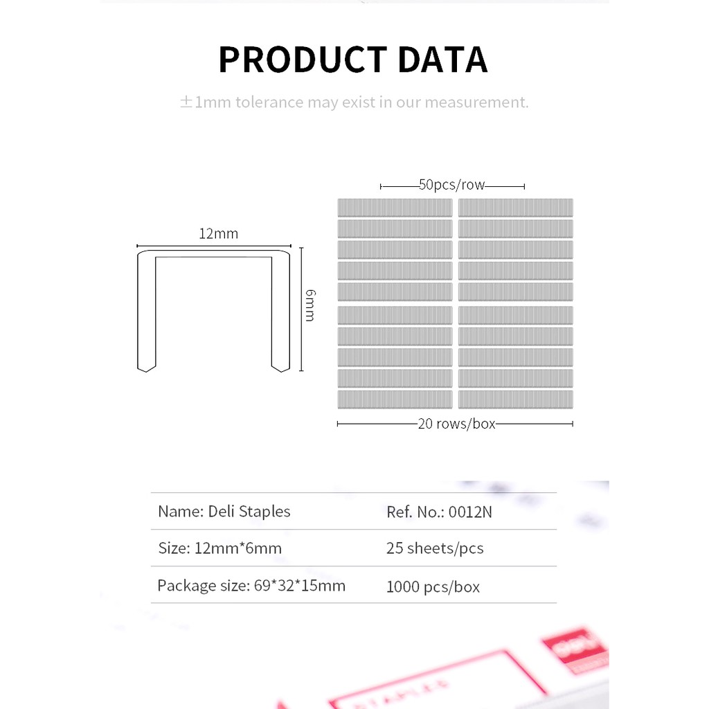 Deli Staples E0012N Small Staples Suitable for Stapler Type 24/6 Sharp Tips Staples 25 Sheets [1000 Pcs/Box]