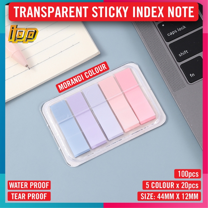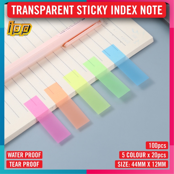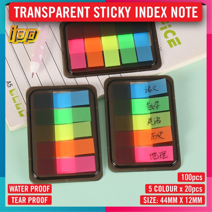 Transparent Sticky Index Note / Index Stick Tabs 5 Colour Water Proof & Tear Proof 12mm X 44mm (100's/pack)