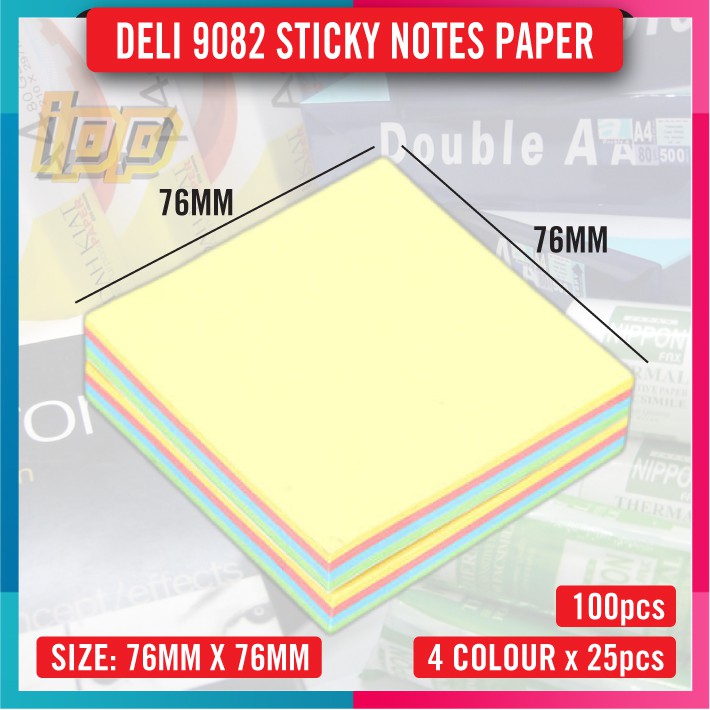 Deli Stick-On Notes 76mm X 76mm (3'' x 3'') / Sticky Note 4 Colour Paper (100's/pack)-9082
