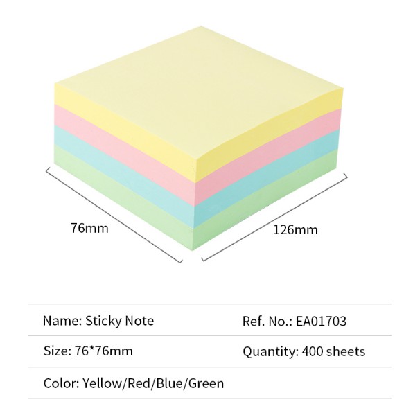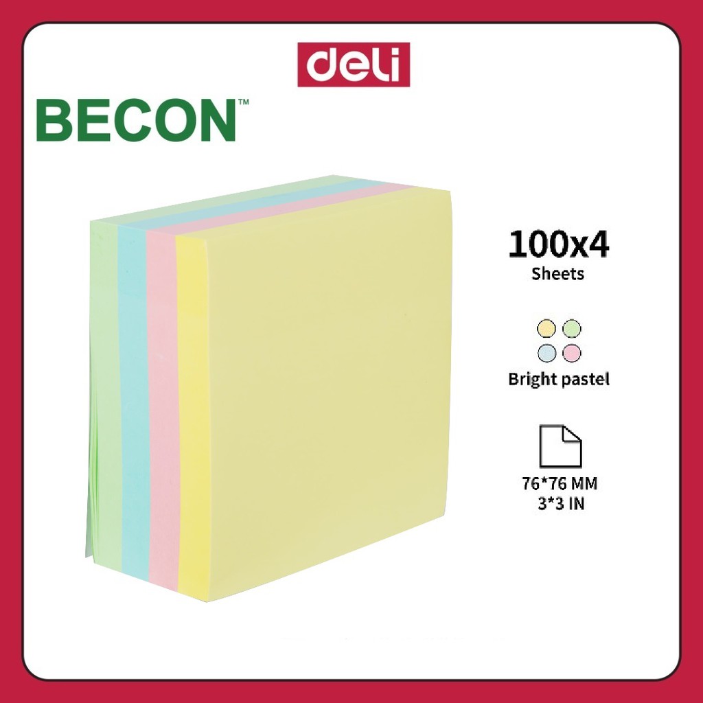 Deli Sticky Notes Bright Pastel Colour 3x3 inch EA01703 4x100's