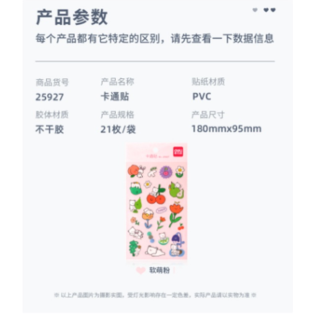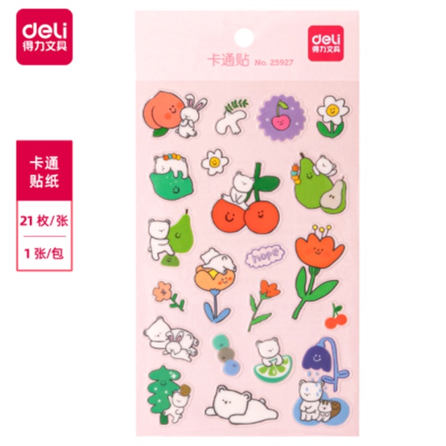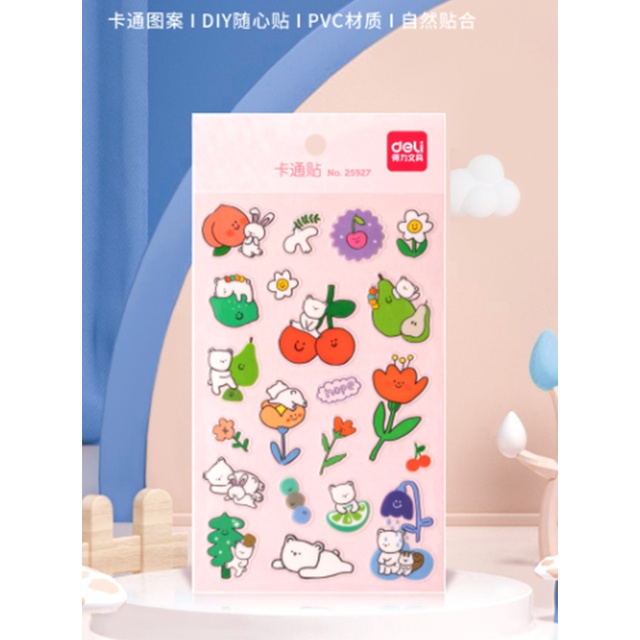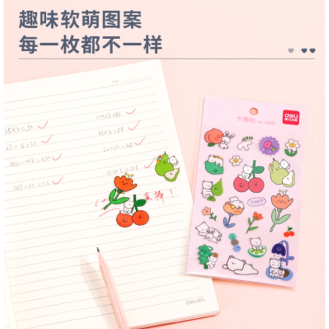 Deli Sticky Notes Sticker Carton Pattern Cute Design Multi-scene Use PVC Material Strong Adhesive (1 Pcs/Bag) 25927
