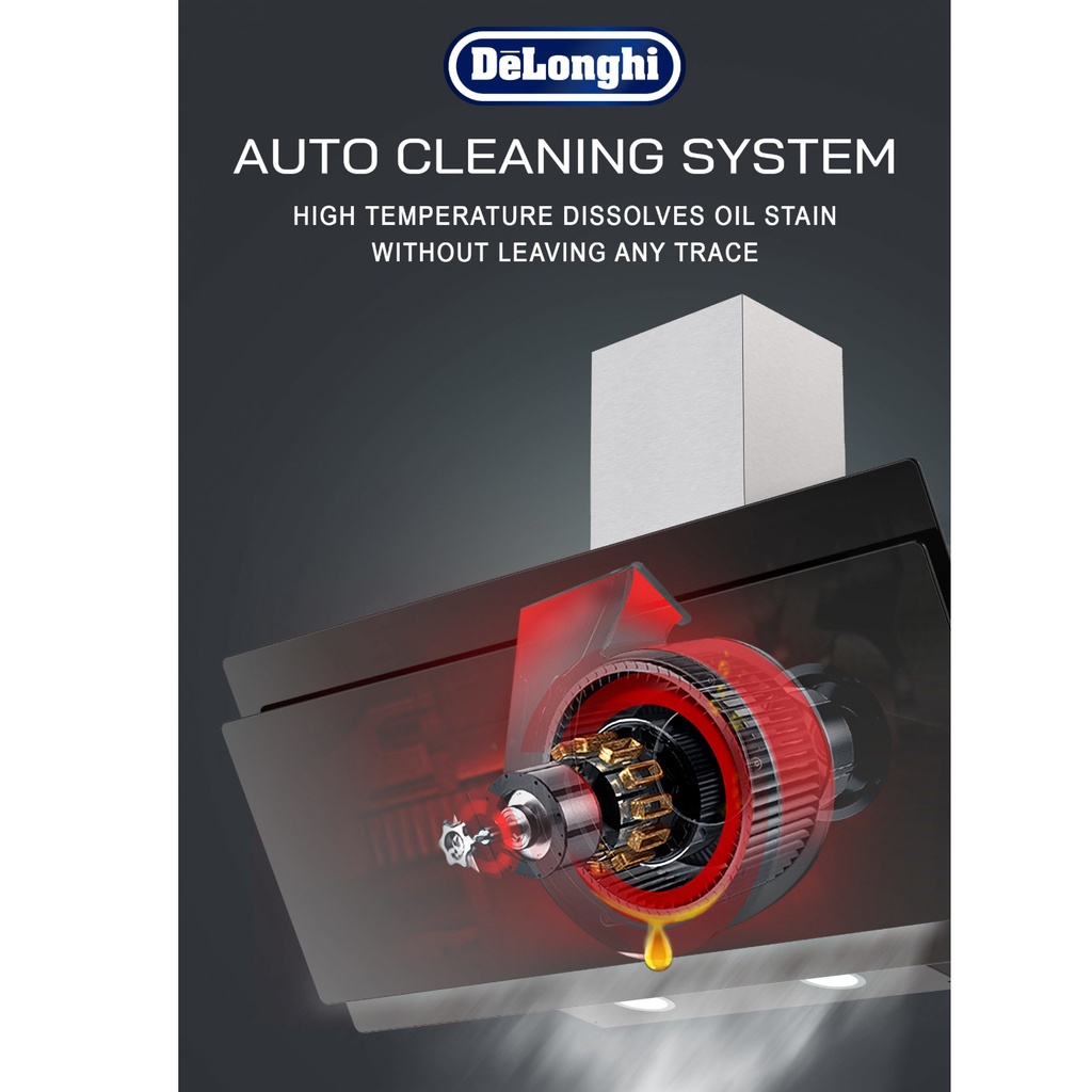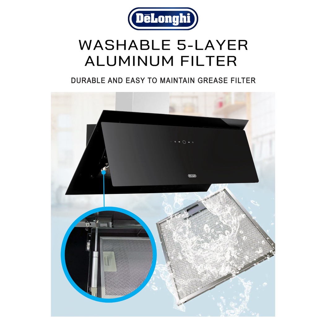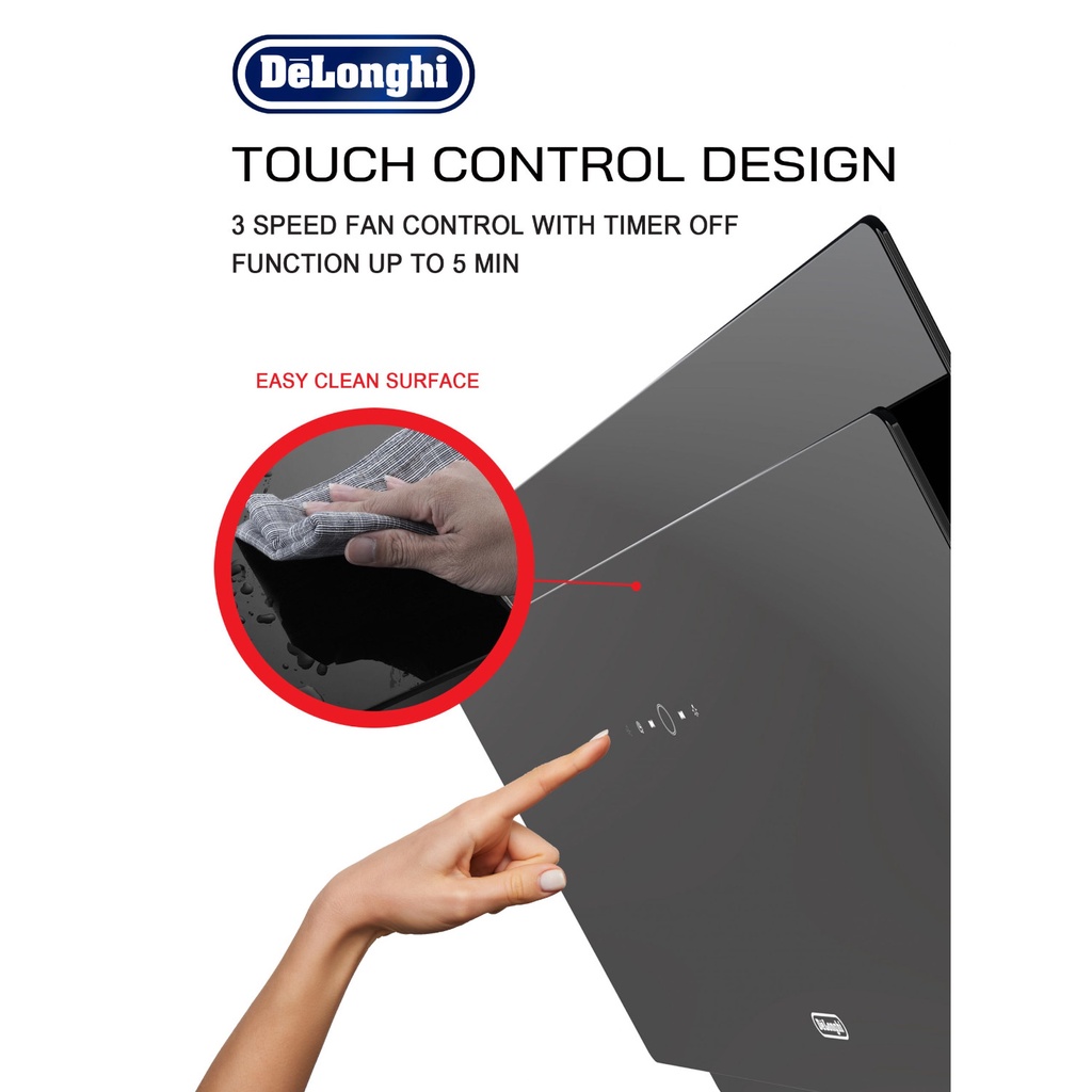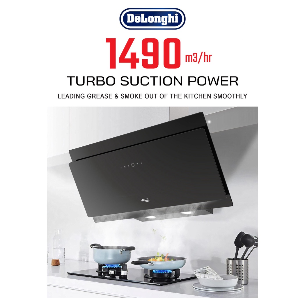 Delonghi - DH-8933 AC - 1490 Suction Power Decorative Chimney Cooker Hood / Slanted Glass Hood