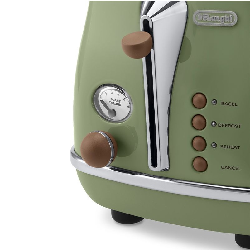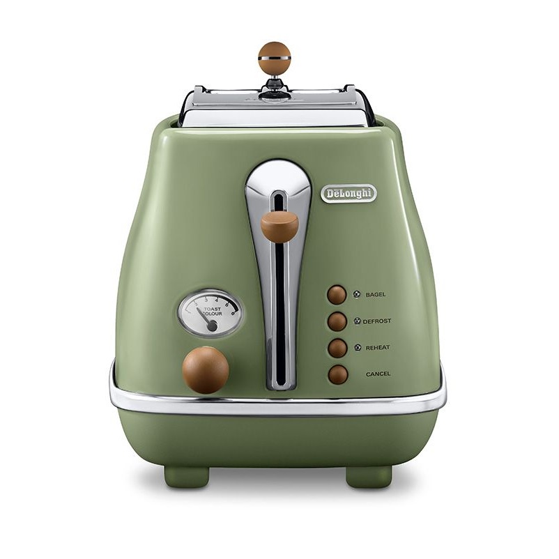 Delonghi Icona Vintage CTOV2003 2 Slice Toaster Stainless Steel Body With Lid Cover CTOV2003.BG CTOV2003.GR CTOV2003.BK
