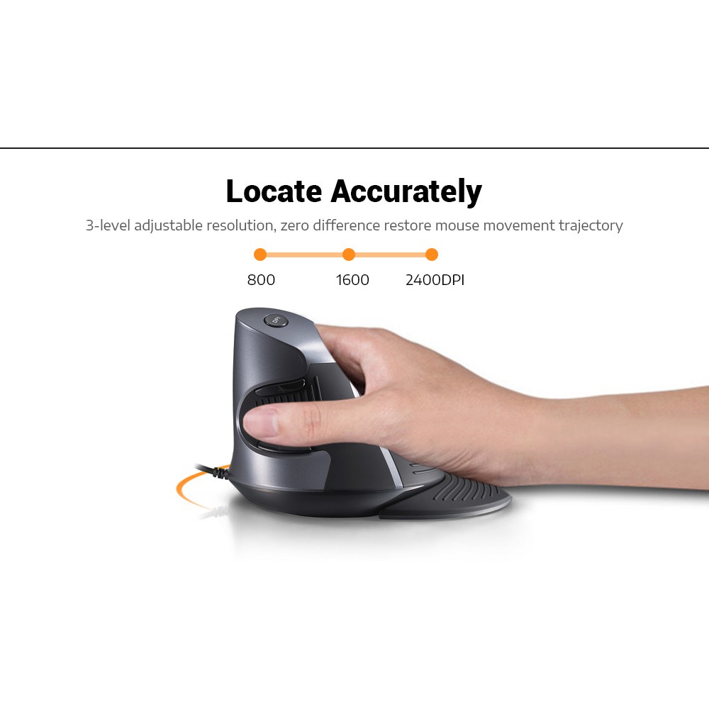 Delux Wired Wireless Vertical Mouse Adjustable Resolution 2400DPI Computer PC Laptop