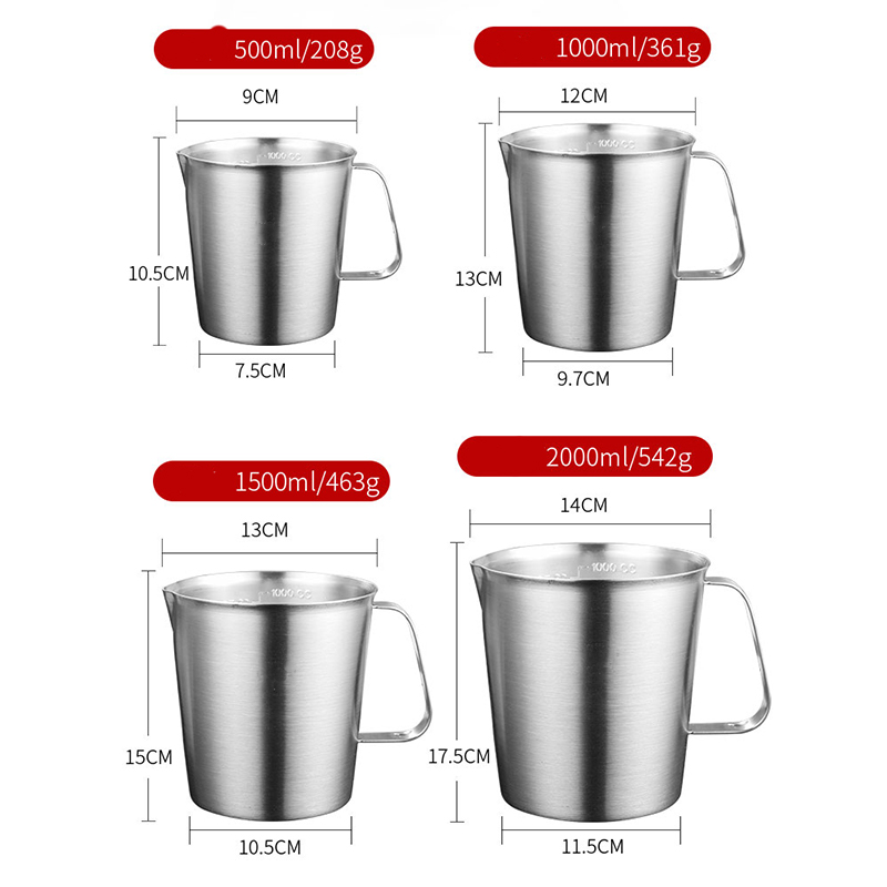 Deluxe 304 Stainless Steel Measuring Cup Set - Easy to Read, Easy Pour, Dishwasher Safe, Perfect Baking Measuring Cup with Handle & Spout, Great Gift for Baker, Sizes: 500ml/700ml/1000ml/1500ml/2000ml