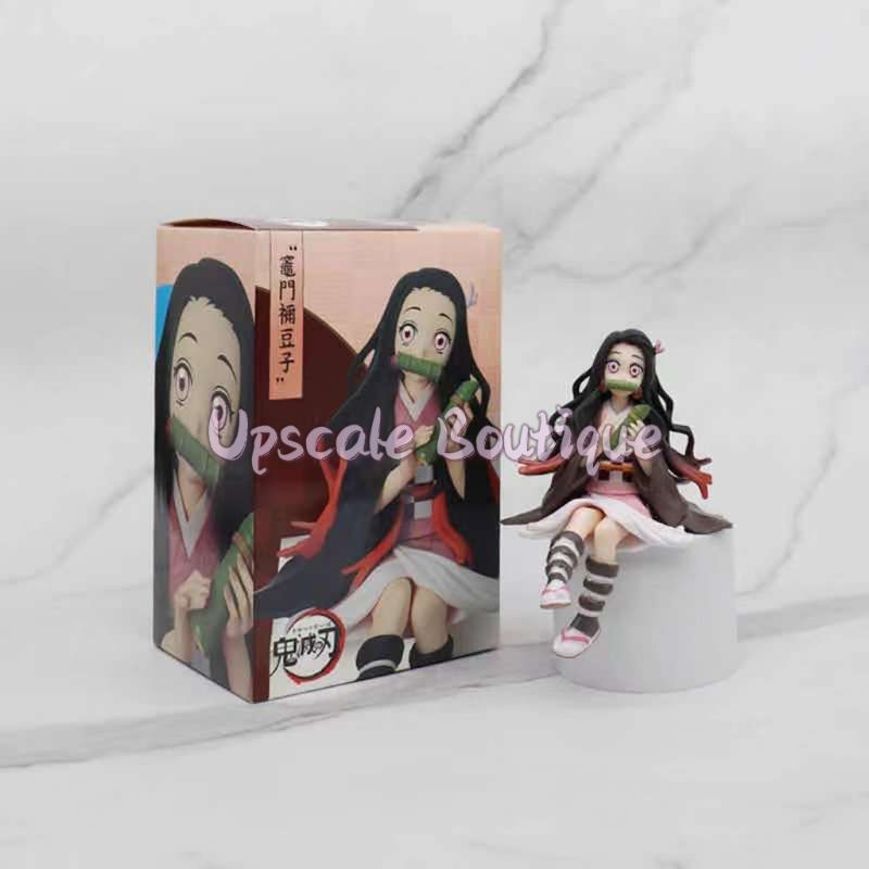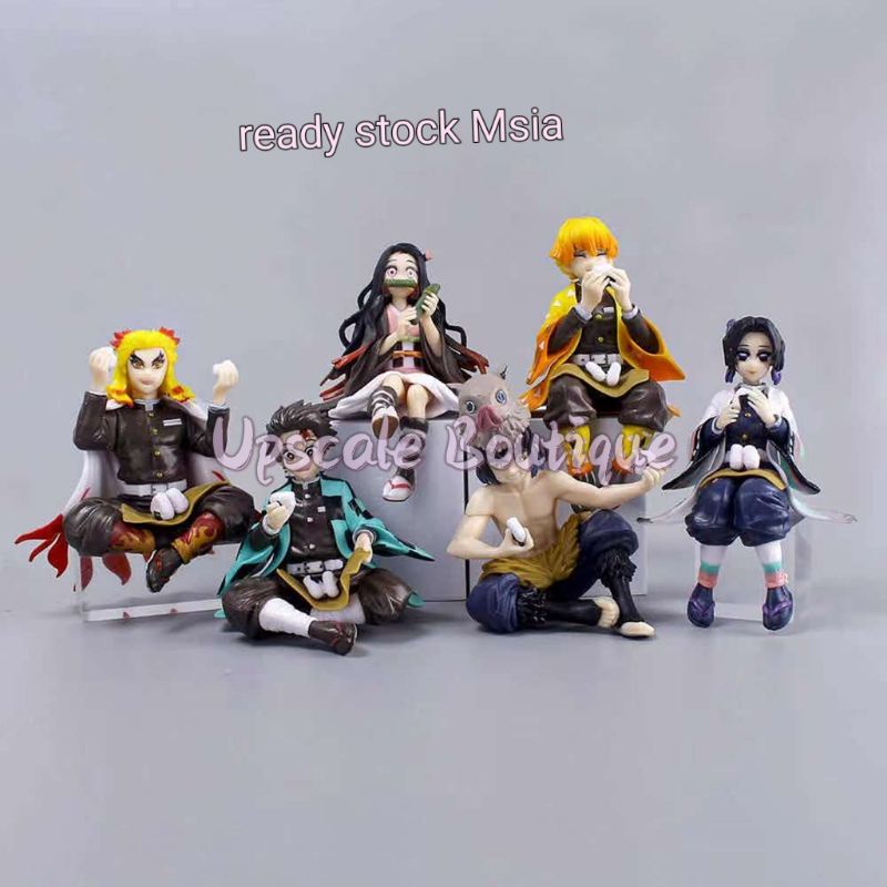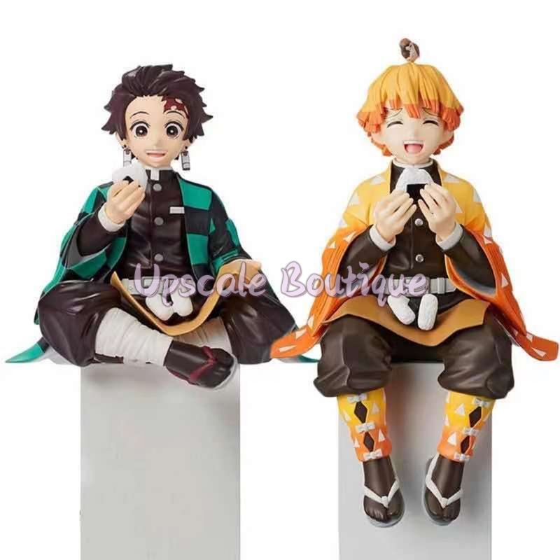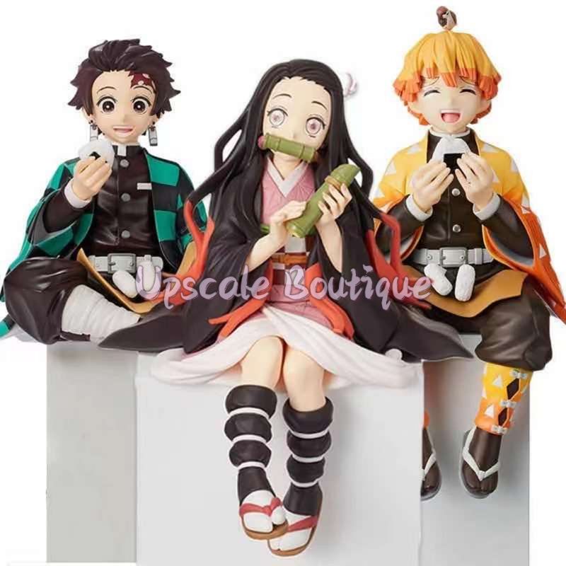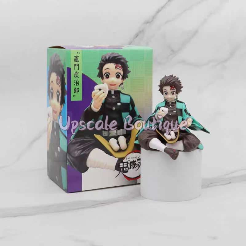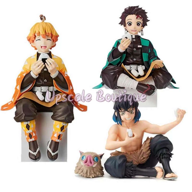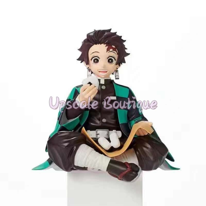 Demon Slayer Figure Tanjirou Eat Rice Balls Sitting Japan Anime Action Figure Shinobu Zenitsu Inosuke Nezuko Figure Toys
