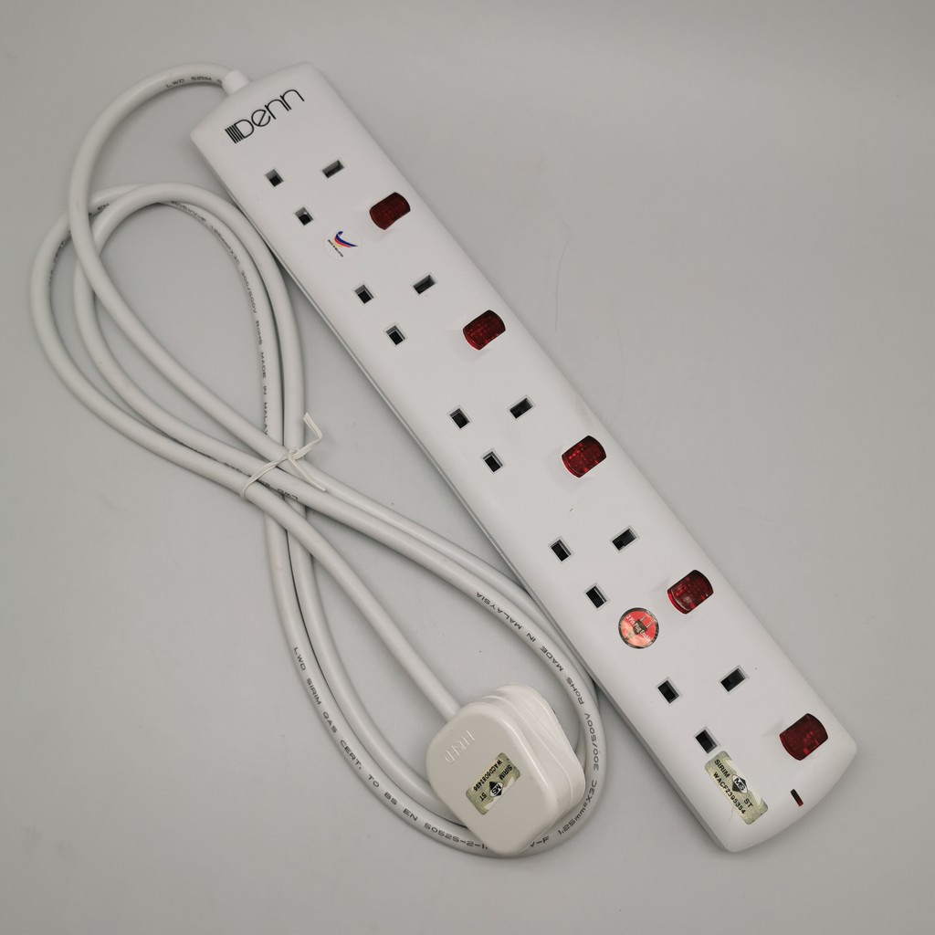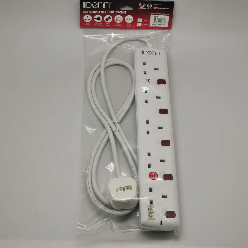 Denn DTS-852N 5 Gang Extension Trailing Socket with Cable (2 meter x 1.25mm)