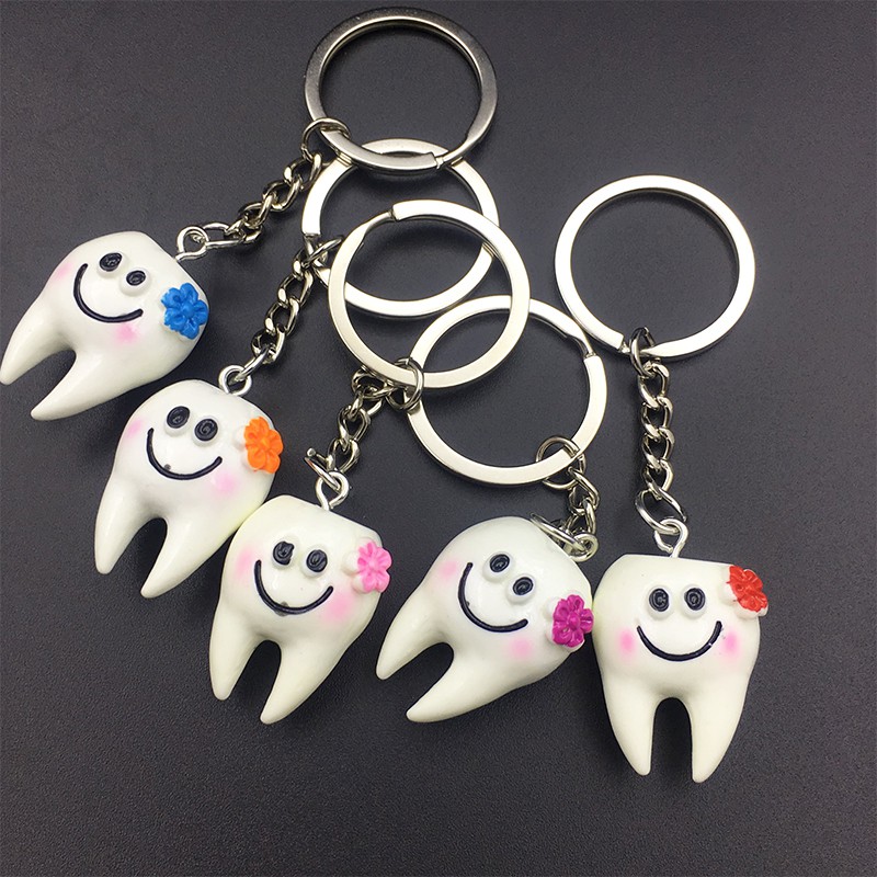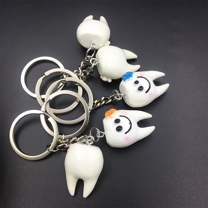 Dental Teeth Shape Model Simulation Tooth Key Chain Cartoon Lovely Gift Pendant Teeth Key Chain Dentist Gift