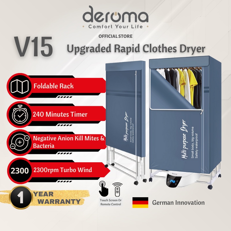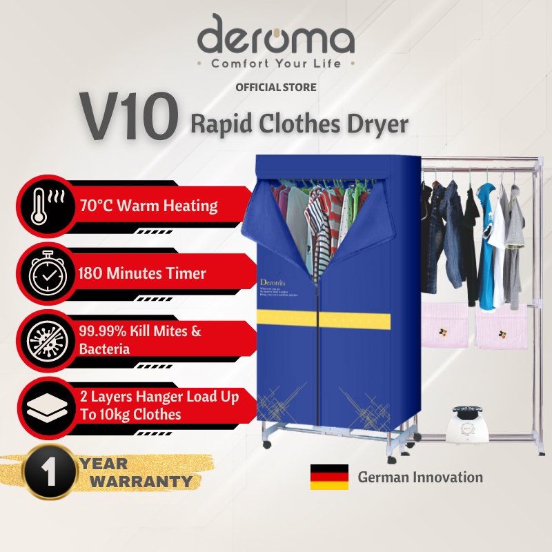 Deroma V10 V15 Clothes Dryer Electric Drying Machine Double Layer Rack Cloths (Heat to Kill Bacteria, Germ, Virus)