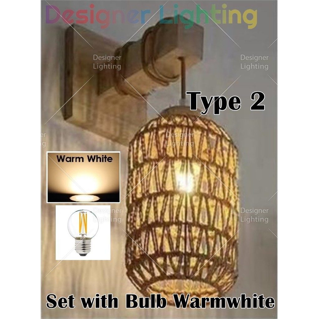 Designer Wall Light Rattan Wall Lamp Muji Concept Bamboo Wall Light Lampu Rotan Deco Light Lampu Hiasan (ET Rattan)
