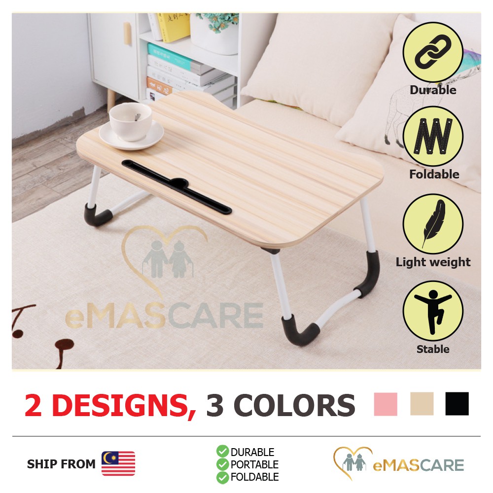 Desk Wooden Table with Slot Elegant Color Foldable Desk Cup Portable Simple Waterproof Table Laptop Computer Study Meja