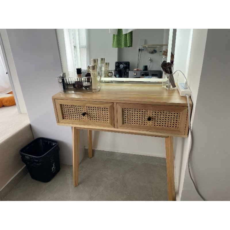 Desk, light luxury, modern solid wood rattan desk, study room, computer desk, simple all-in-one Nordic dressing table,