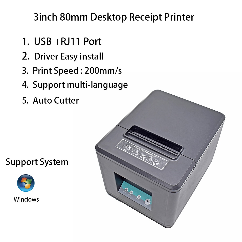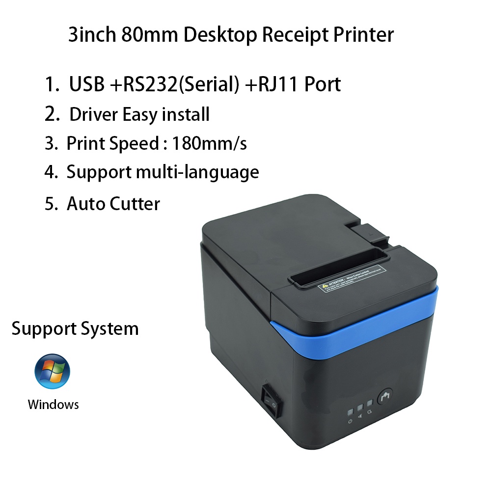 Desktop 80mm Thermal Receipt Printer for Hotel Restaurant Print Bill with USB Serial/RS232 RJ11 Port and Auto Cutter
