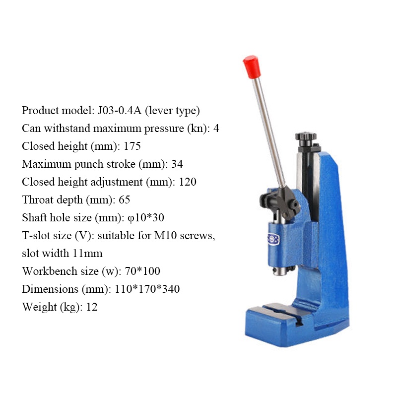 Desktop Manual Punching Machine J03-0.4A with 4KN Capacity for Handcrafted Beer Punching - Small and Convenient Press