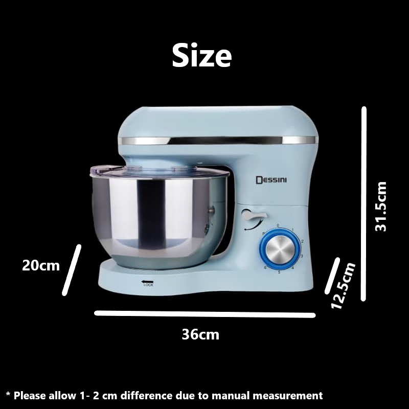Dessini Stand Mixer 6.5L Stainless Steel Bowl Easy Operate with 6 Speed Control Electric Kitchen Mixer 6.5 Liters
