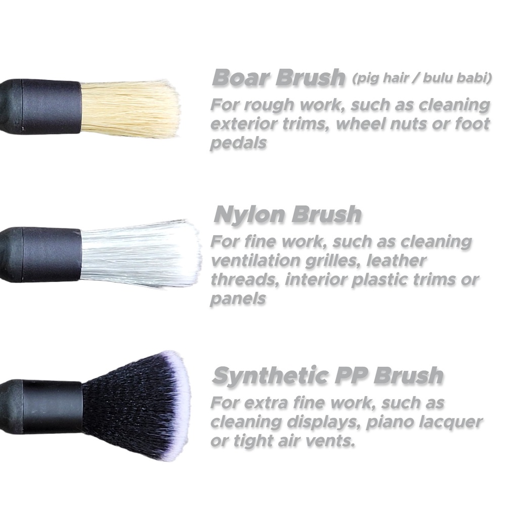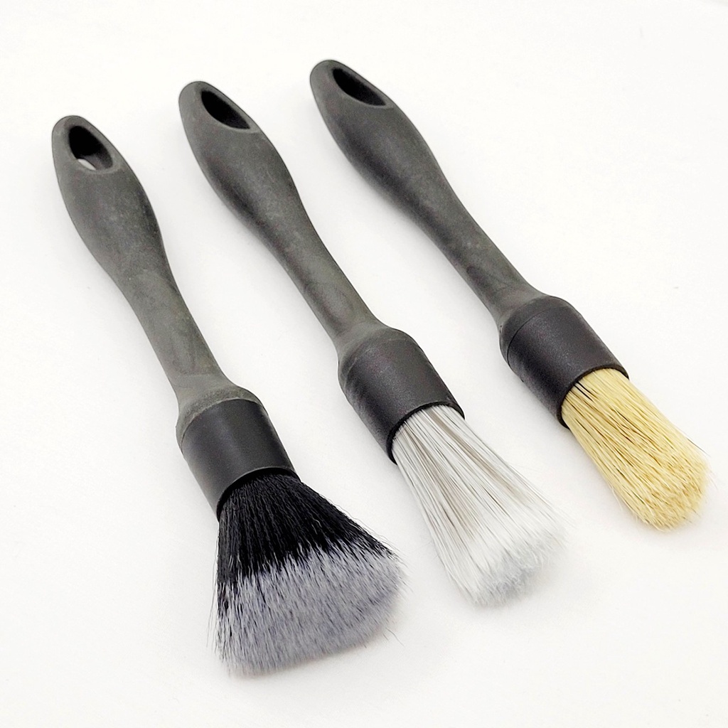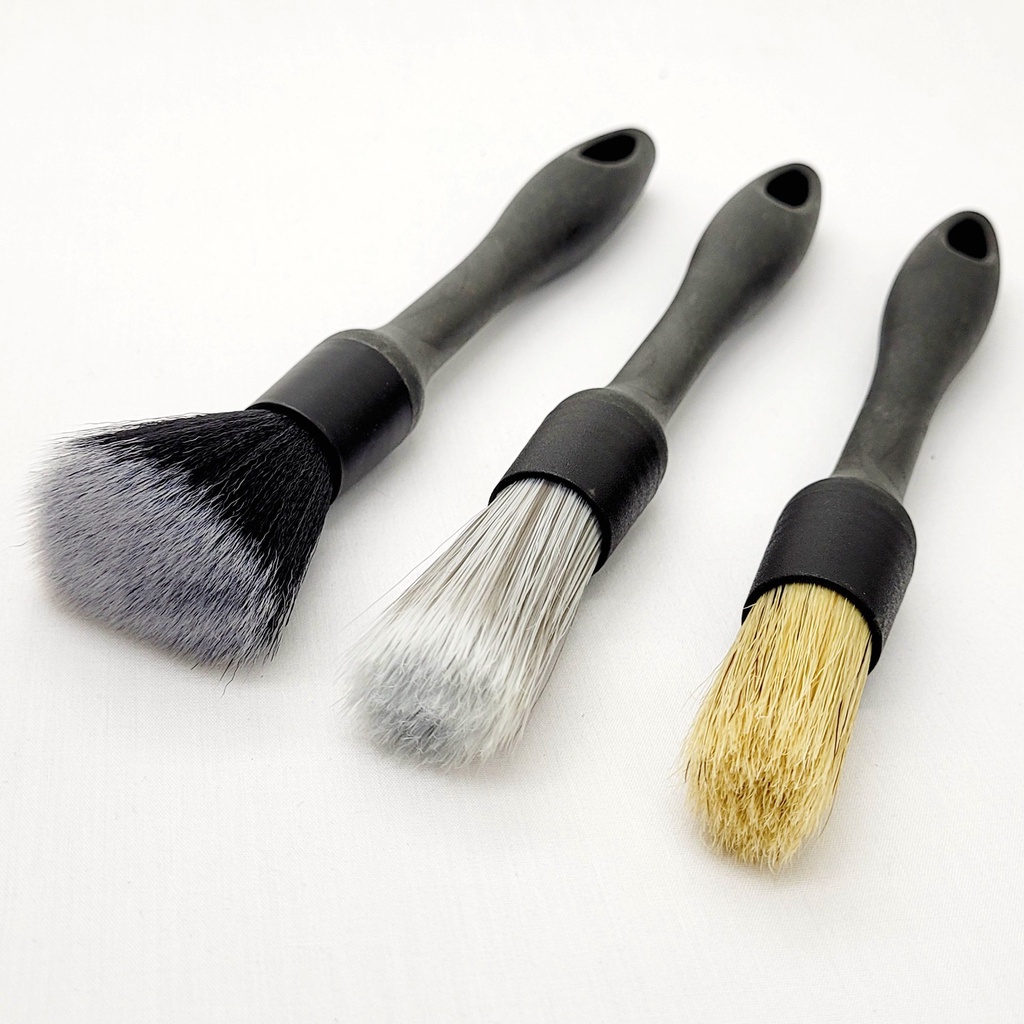 Detail Brush Set - 3 PCS - Auto Detailing Brushes For Multiple Function Surfaces - Boar / Nylon / Synthetic 3 Piece KIT