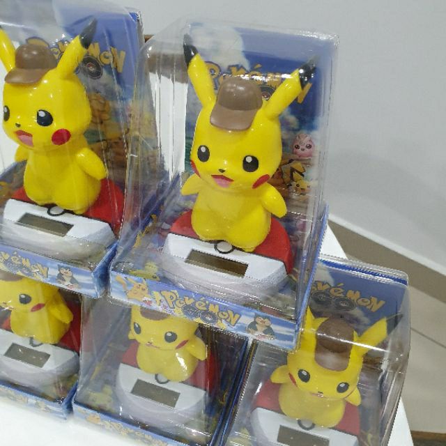 Detective Pikachu SOLAR POWER SHAKING HEAD CAR ORNAMENT TOYS - Ready Stock