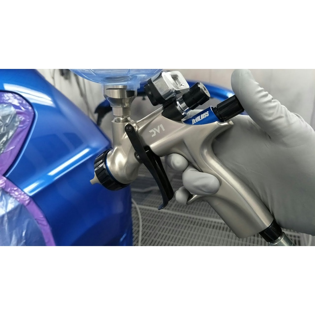 Devilbiss DV1 Basecoat HVLP Spray Gun (with DV1-B Plus(HVLP)Air Cap) - Free Air Adjusting Valve with Gauge HAV-503-B
