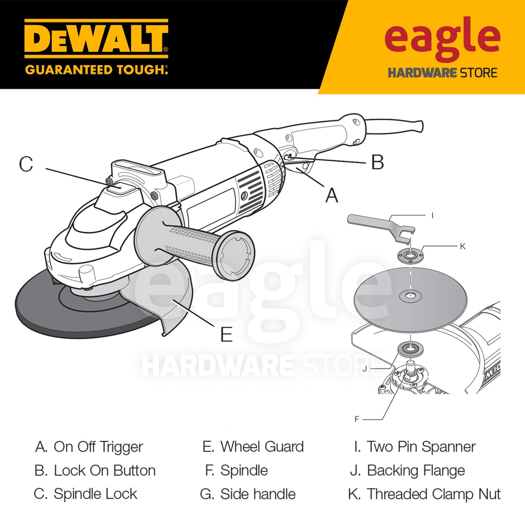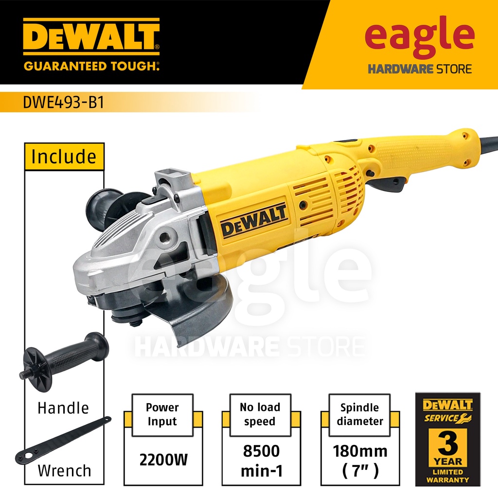 Dewalt DWE493-B1 180mm ( 7" ) 2200W Large Angle Grinder, Trigger Switch ( DWE493, Replacement D28413 )