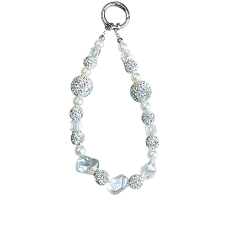 Diamond Crystal Bead Pendant Mobile Phone Chain Lanyard With Clip Hand Beaded Handphone Chain Mobile Chain