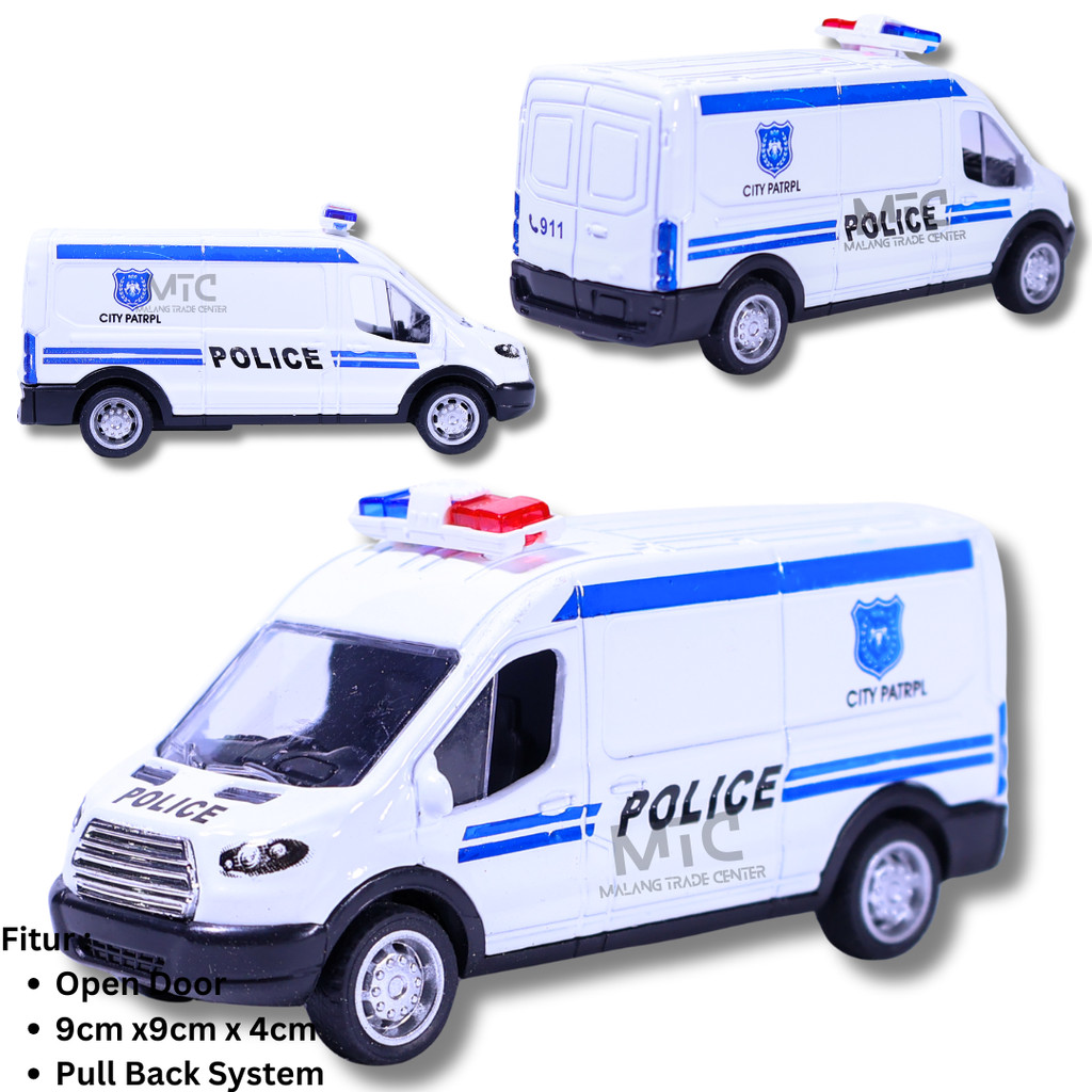 Diecast Alloy Metal Miniature Police Car Firefighter Ambulance Pull Back