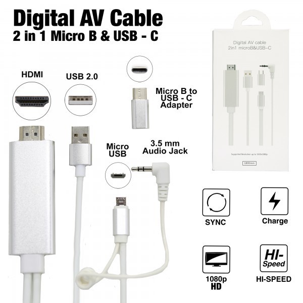 Digital Av Cable 2 in 1 Micro B USB-C 1800mm
